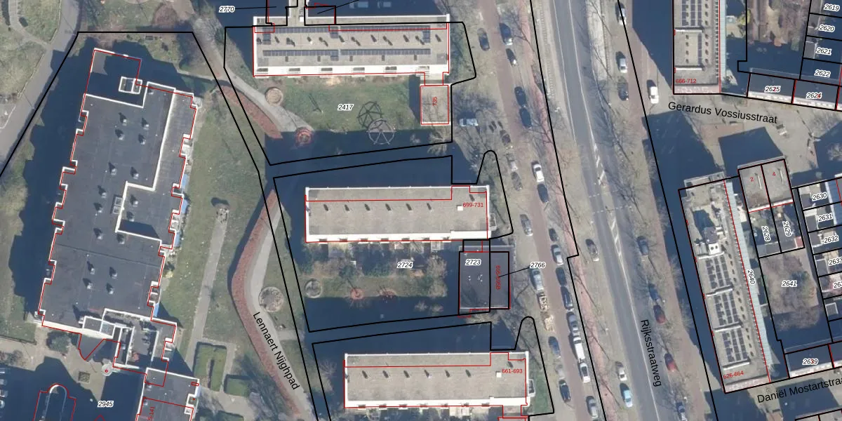 Rijksstraatweg 707 is gelegen op kadastraal perceel STN01A2724. Deze kadastrale aanduiding is uniek en wordt gebruikt door het Kadaster om eigendomsrechten en andere zakelijke rechten vast te leggen. Het perceel maakt onderdeel uit van de kadastrale gemeente Schoten.