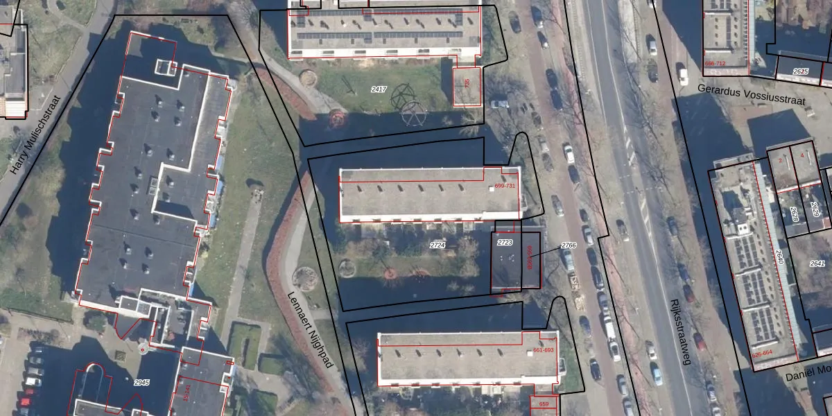 Rijksstraatweg 725 is gelegen op kadastraal perceel STN01A2724. Deze kadastrale aanduiding is uniek en wordt gebruikt door het Kadaster om eigendomsrechten en andere zakelijke rechten vast te leggen. Het perceel maakt onderdeel uit van de kadastrale gemeente Schoten.
