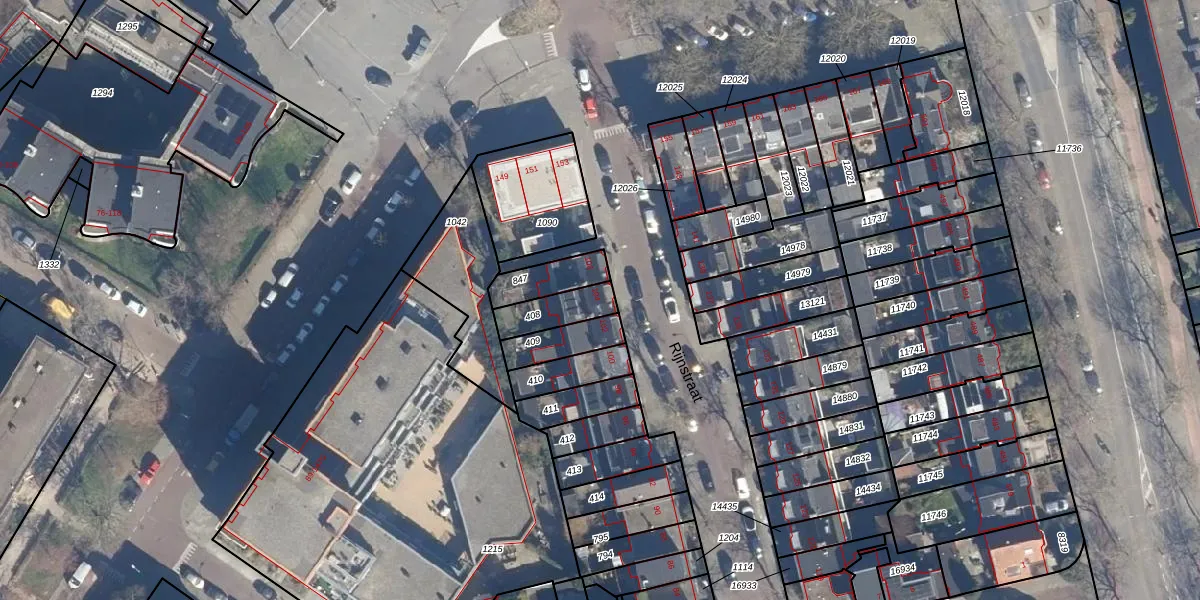 Het perceel waarop Rijnstraat 104 staat heeft een oppervlakte van 107 m². Dit is een middelgroot perceel. De perceeloppervlakte wordt geregistreerd door het Kadaster. Gedetailleerde informatie over de maten van dit perceel kunt u vinden in het rapport Kadastrale kaart met maatvoering van Rijnstraat 104.