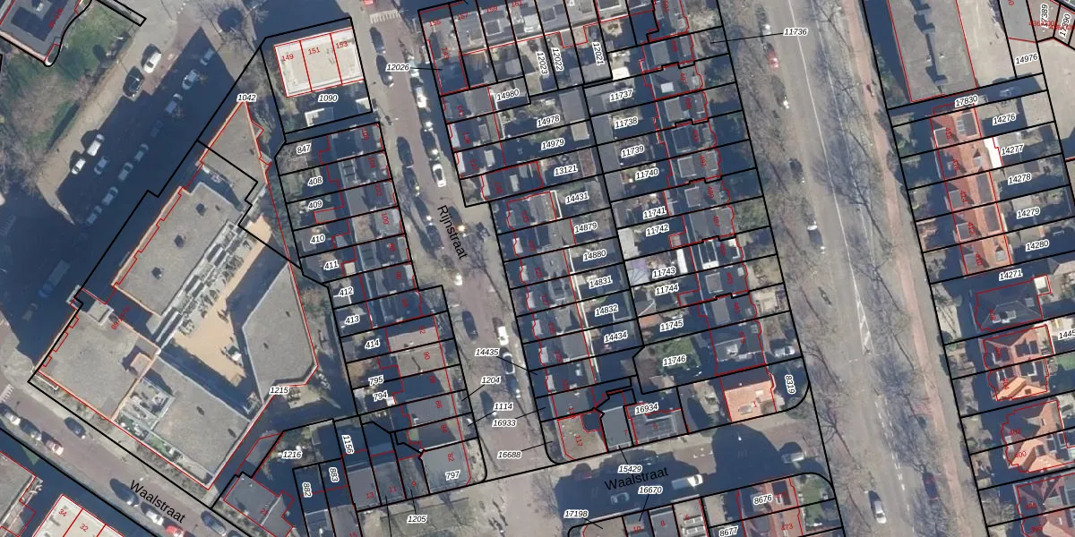 Gebruik de zoekbalk of klik op een perceel voor informatie over de adressen binnen dit perceel.