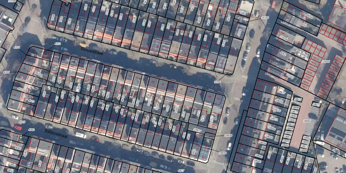 Het perceel waarop Riouwstraat 30 staat heeft een oppervlakte van 114 m². Dit is een middelgroot perceel. De perceeloppervlakte wordt geregistreerd door het Kadaster. Gedetailleerde informatie over de maten van dit perceel kunt u vinden in het rapport Kadastrale kaart met maatvoering van Riouwstraat 30.