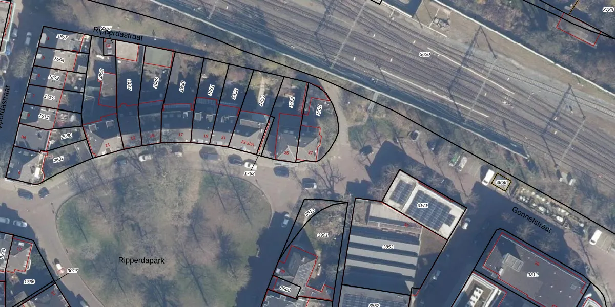 Het perceel waarop Ripperdapark 27 staat heeft een oppervlakte van 217 m². Dit is een middelgroot perceel. De perceeloppervlakte wordt geregistreerd door het Kadaster. Gedetailleerde informatie over de maten van dit perceel kunt u vinden in het rapport Kadastrale kaart met maatvoering van Ripperdapark 27.