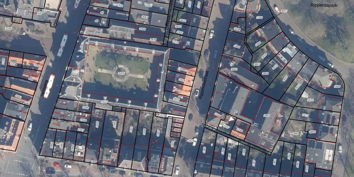Ripperdastraat 34-RD is gelegen op kadastraal perceel HLM01B1815. Deze kadastrale aanduiding is uniek en wordt gebruikt door het Kadaster om eigendomsrechten en andere zakelijke rechten vast te leggen. Het perceel maakt onderdeel uit van de kadastrale gemeente Haarlem.