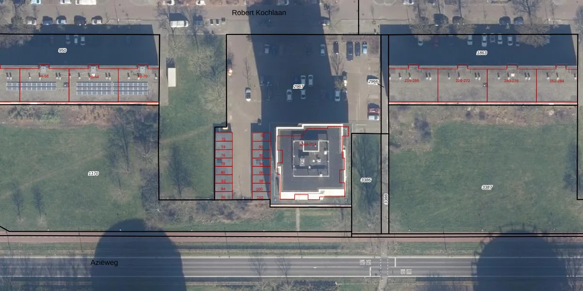 Het perceel waarop Robert Kochlaan 104-A staat heeft een oppervlakte van 2958 m². Dit is een zeer groot perceel. De perceeloppervlakte wordt geregistreerd door het Kadaster. Gedetailleerde informatie over de maten van dit perceel kunt u vinden in het rapport Kadastrale kaart met maatvoering van Robert Kochlaan 104-A.