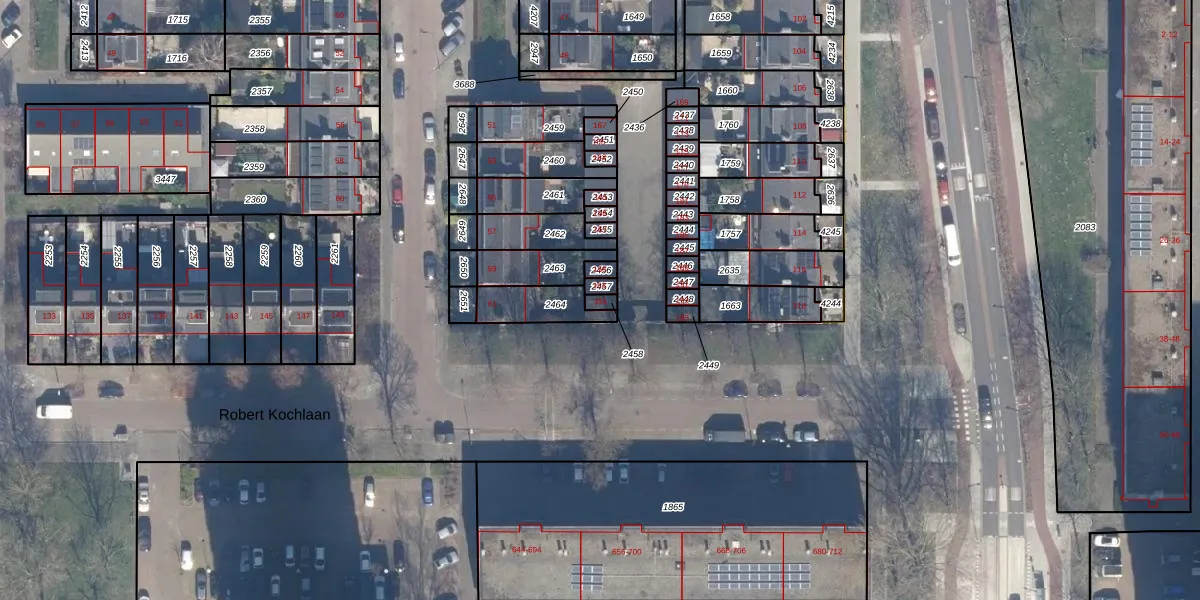 Gebruik de zoekbalk of klik op een perceel voor informatie over de adressen binnen dit perceel.
