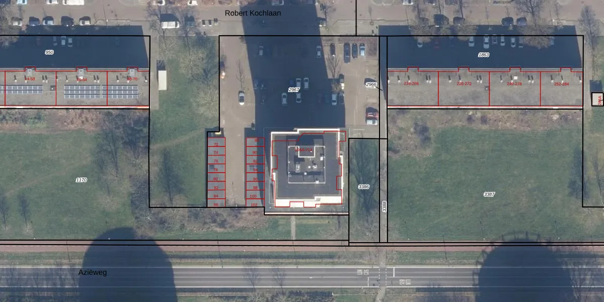 Het perceel waarop Robert Kochlaan 176 staat heeft een oppervlakte van 2958 m². Dit is een zeer groot perceel. De perceeloppervlakte wordt geregistreerd door het Kadaster. Gedetailleerde informatie over de maten van dit perceel kunt u vinden in het rapport Kadastrale kaart met maatvoering van Robert Kochlaan 176.