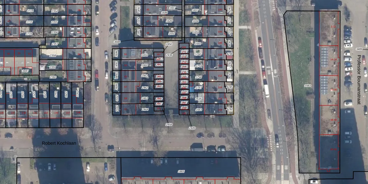 Het perceel waarop Robert Kochlaan 187 staat heeft een oppervlakte van 15 m². Dit is een klein perceel. De perceeloppervlakte wordt geregistreerd door het Kadaster. Gedetailleerde informatie over de maten van dit perceel kunt u vinden in het rapport Kadastrale kaart met maatvoering van Robert Kochlaan 187.