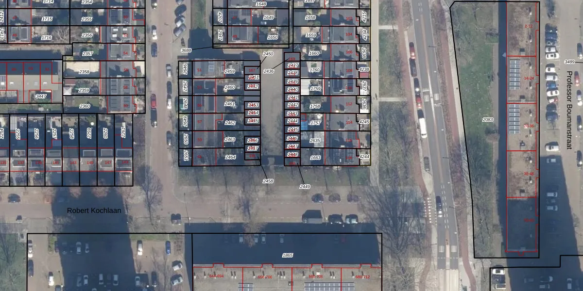 Het perceel waarop Robert Kochlaan 191 staat heeft een oppervlakte van 15 m². Dit is een klein perceel. De perceeloppervlakte wordt geregistreerd door het Kadaster. Gedetailleerde informatie over de maten van dit perceel kunt u vinden in het rapport Kadastrale kaart met maatvoering van Robert Kochlaan 191.