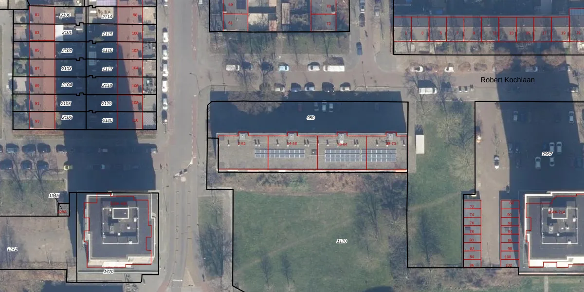 Het perceel waarop Robert Kochlaan 20 staat heeft een oppervlakte van 1641 m². Dit is een zeer groot perceel. De perceeloppervlakte wordt geregistreerd door het Kadaster. Gedetailleerde informatie over de maten van dit perceel kunt u vinden in het rapport Kadastrale kaart met maatvoering van Robert Kochlaan 20.