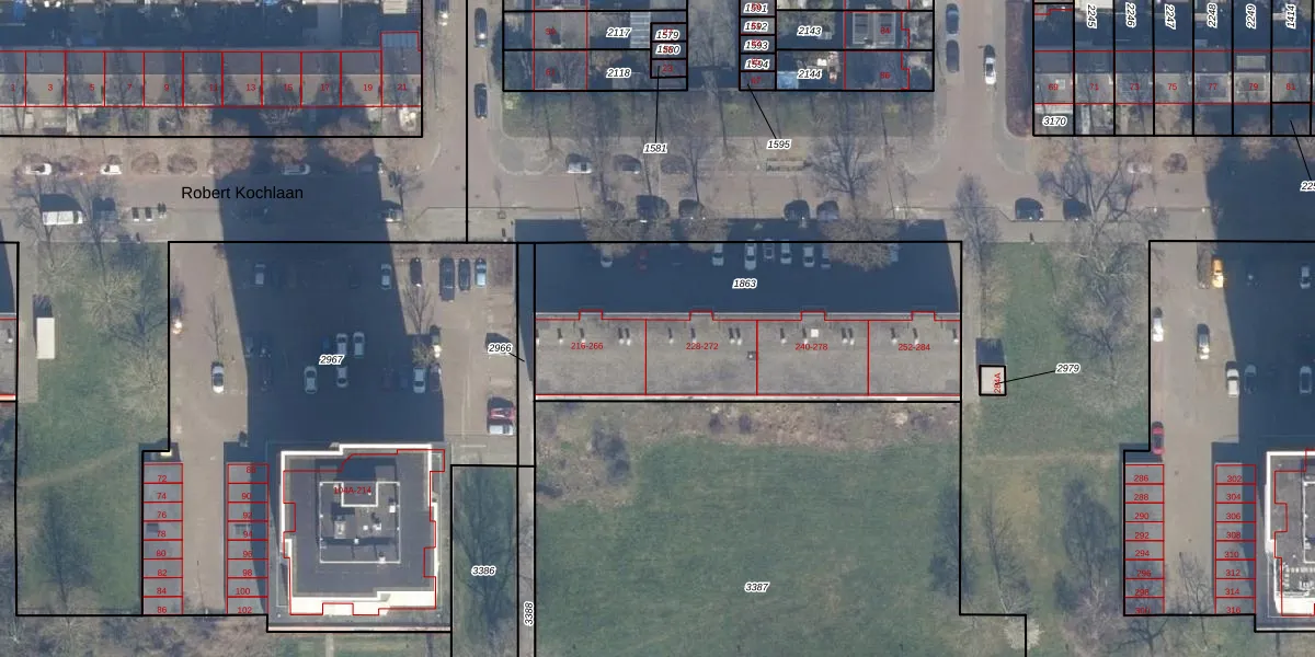Het perceel waarop Robert Kochlaan 270 staat heeft een oppervlakte van 1593 m². Dit is een zeer groot perceel. De perceeloppervlakte wordt geregistreerd door het Kadaster. Gedetailleerde informatie over de maten van dit perceel kunt u vinden in het rapport Kadastrale kaart met maatvoering van Robert Kochlaan 270.
