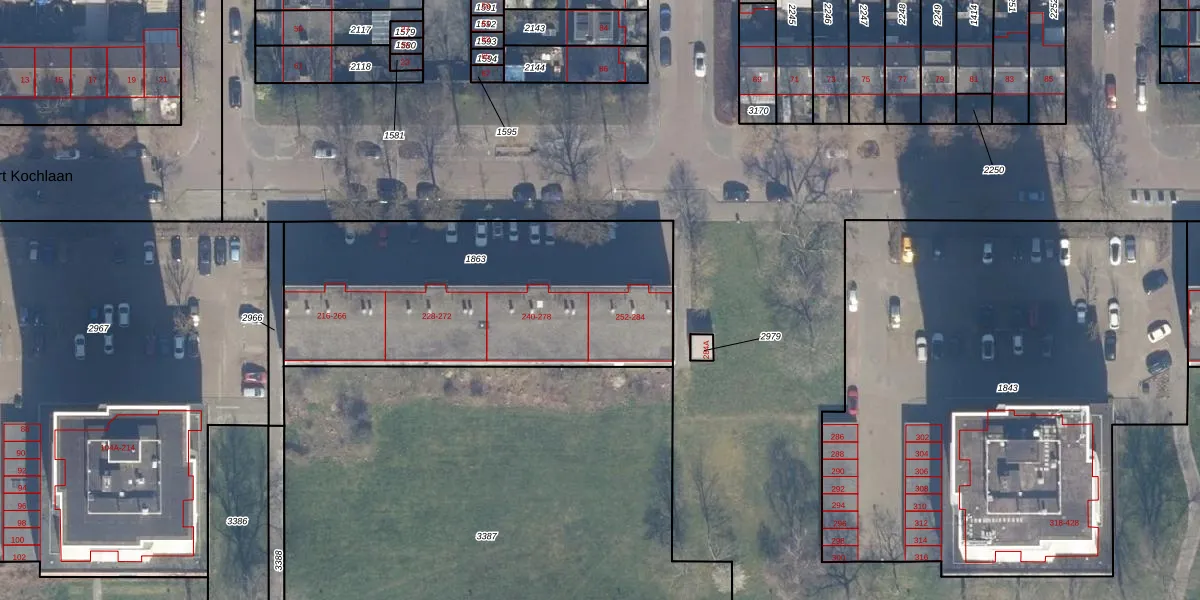 Het perceel waarop Robert Kochlaan 282 staat heeft een oppervlakte van 1593 m². Dit is een zeer groot perceel. De perceeloppervlakte wordt geregistreerd door het Kadaster. Gedetailleerde informatie over de maten van dit perceel kunt u vinden in het rapport Kadastrale kaart met maatvoering van Robert Kochlaan 282.