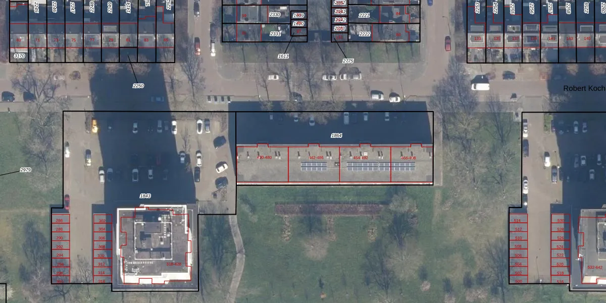 Het perceel waarop Robert Kochlaan 486 staat heeft een oppervlakte van 1593 m². Dit is een zeer groot perceel. De perceeloppervlakte wordt geregistreerd door het Kadaster. Gedetailleerde informatie over de maten van dit perceel kunt u vinden in het rapport Kadastrale kaart met maatvoering van Robert Kochlaan 486.