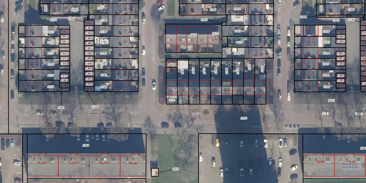Gebruik de zoekbalk of klik op een perceel voor informatie over de adressen binnen dit perceel.