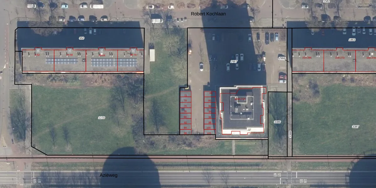 Het perceel waarop Robert Kochlaan 72 staat heeft een oppervlakte van 2958 m². Dit is een zeer groot perceel. De perceeloppervlakte wordt geregistreerd door het Kadaster. Gedetailleerde informatie over de maten van dit perceel kunt u vinden in het rapport Kadastrale kaart met maatvoering van Robert Kochlaan 72.