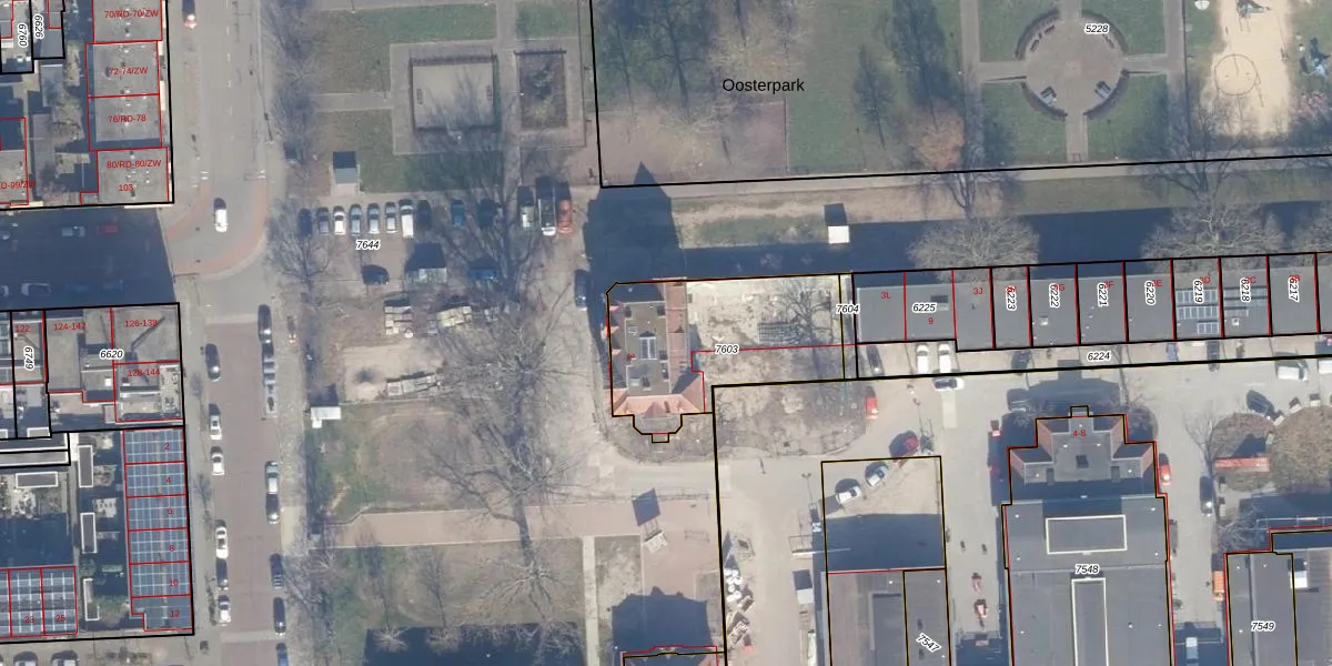 Het adres is gelegen op perceel 7603 in de sectie E en de kadastrale gemeente Haarlem. De kadastrale aanduiding is aldus HLM01-E-7603. Het perceel is met 629 m² relatief groot. Het gemiddelde ligt in de kadastrale gemeente Haarlem op 328,09 m². Het grootste perceel in de kadastrale gemeente is 13,9 ha. Het kleinste perceel heeft een oppervlakte van 0 m². Er zijn 9 adressen aanwezig op het perceel. De huidige grenzen van het perceel zijn digitaal in de Basisregistratie Kadaster (BRK) geregistreerd op 26-09-2025.