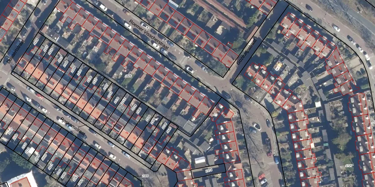 Het perceel waarop Roemer Visscherstraat 138 staat heeft een oppervlakte van 2760 m². Dit is een zeer groot perceel. De perceeloppervlakte wordt geregistreerd door het Kadaster. Gedetailleerde informatie over de maten van dit perceel kunt u vinden in het rapport Kadastrale kaart met maatvoering van Roemer Visscherstraat 138.