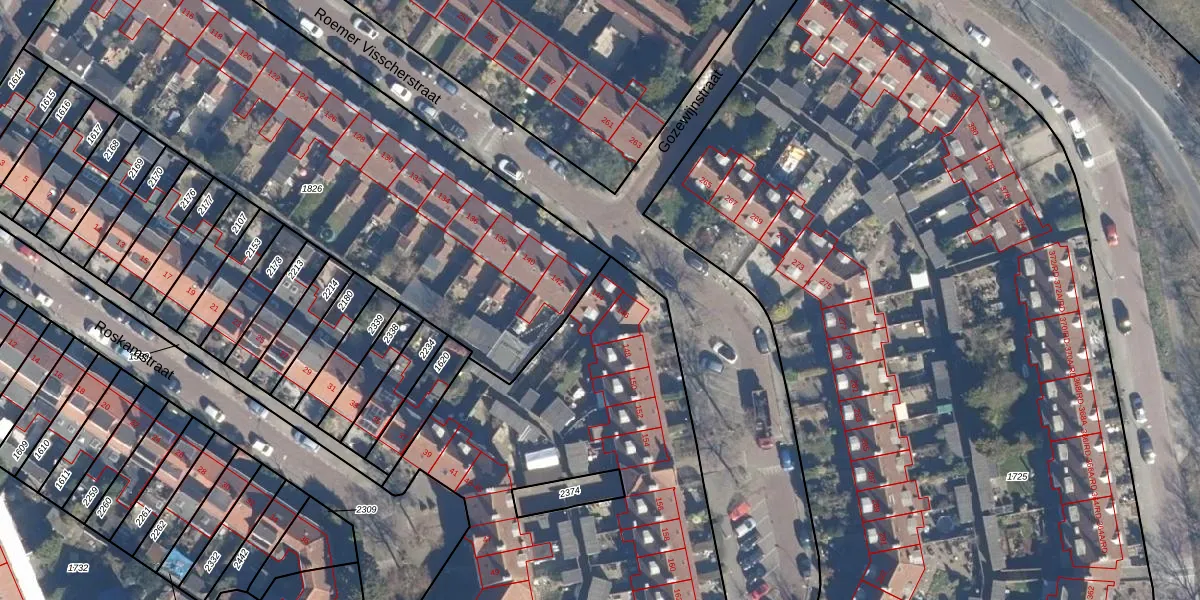 Het perceel waarop Roemer Visscherstraat 144 staat heeft een oppervlakte van 3759 m². Dit is een zeer groot perceel. De perceeloppervlakte wordt geregistreerd door het Kadaster. Gedetailleerde informatie over de maten van dit perceel kunt u vinden in het rapport Kadastrale kaart met maatvoering van Roemer Visscherstraat 144.