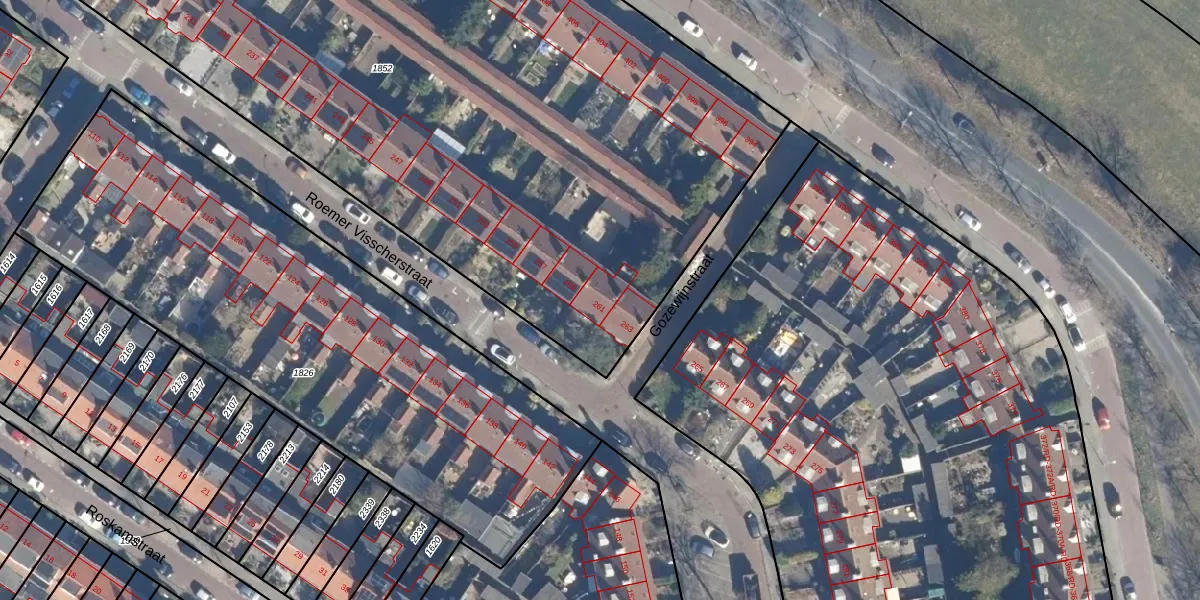 Het perceel waarop Roemer Visscherstraat 261 staat heeft een oppervlakte van 6791 m². Dit is een zeer groot perceel. De perceeloppervlakte wordt geregistreerd door het Kadaster. Gedetailleerde informatie over de maten van dit perceel kunt u vinden in het rapport Kadastrale kaart met maatvoering van Roemer Visscherstraat 261.
