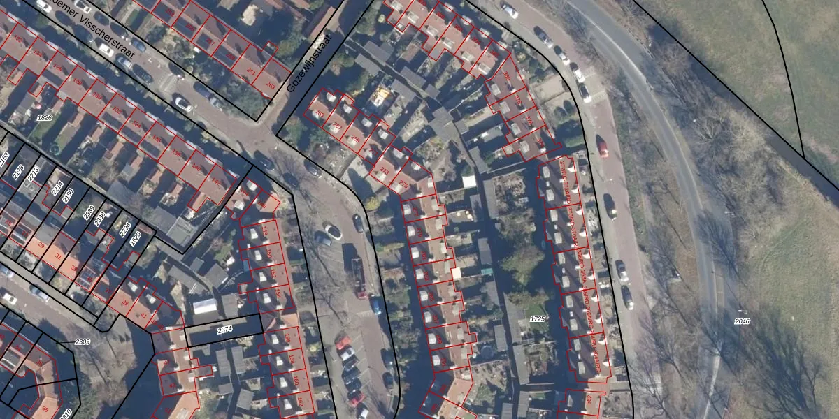 Het perceel waarop Roemer Visscherstraat 277 staat heeft een oppervlakte van 9560 m². Dit is een zeer groot perceel. De perceeloppervlakte wordt geregistreerd door het Kadaster. Gedetailleerde informatie over de maten van dit perceel kunt u vinden in het rapport Kadastrale kaart met maatvoering van Roemer Visscherstraat 277.
