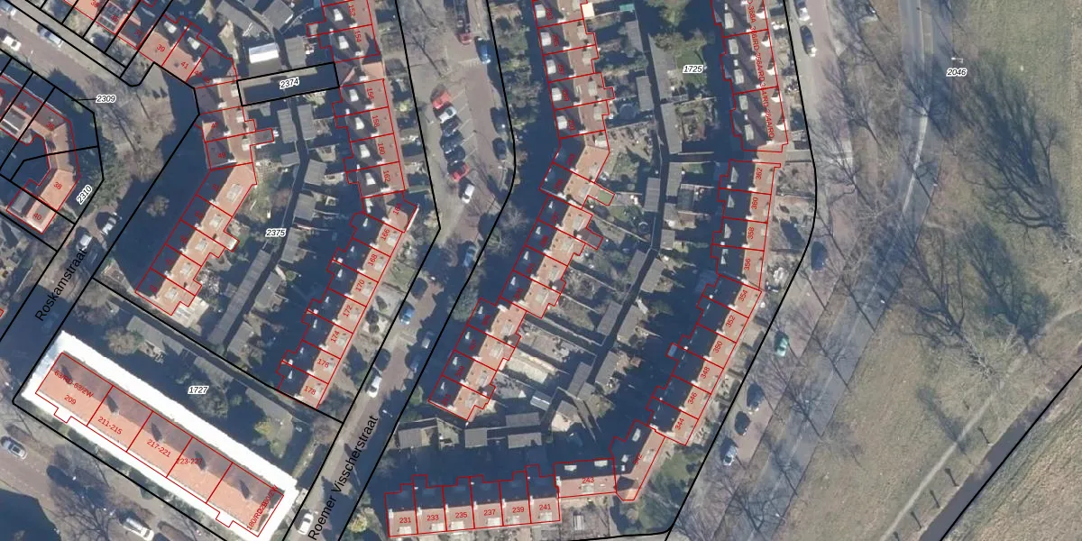 Het perceel waarop Roemer Visscherstraat 301 staat heeft een oppervlakte van 9560 m². Dit is een zeer groot perceel. De perceeloppervlakte wordt geregistreerd door het Kadaster. Gedetailleerde informatie over de maten van dit perceel kunt u vinden in het rapport Kadastrale kaart met maatvoering van Roemer Visscherstraat 301.