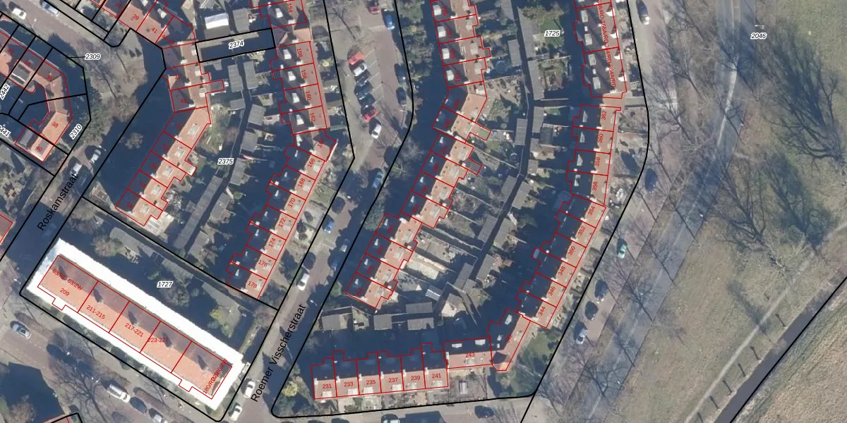 Het perceel waarop Roemer Visscherstraat 303 staat heeft een oppervlakte van 9560 m². Dit is een zeer groot perceel. De perceeloppervlakte wordt geregistreerd door het Kadaster. Gedetailleerde informatie over de maten van dit perceel kunt u vinden in het rapport Kadastrale kaart met maatvoering van Roemer Visscherstraat 303.