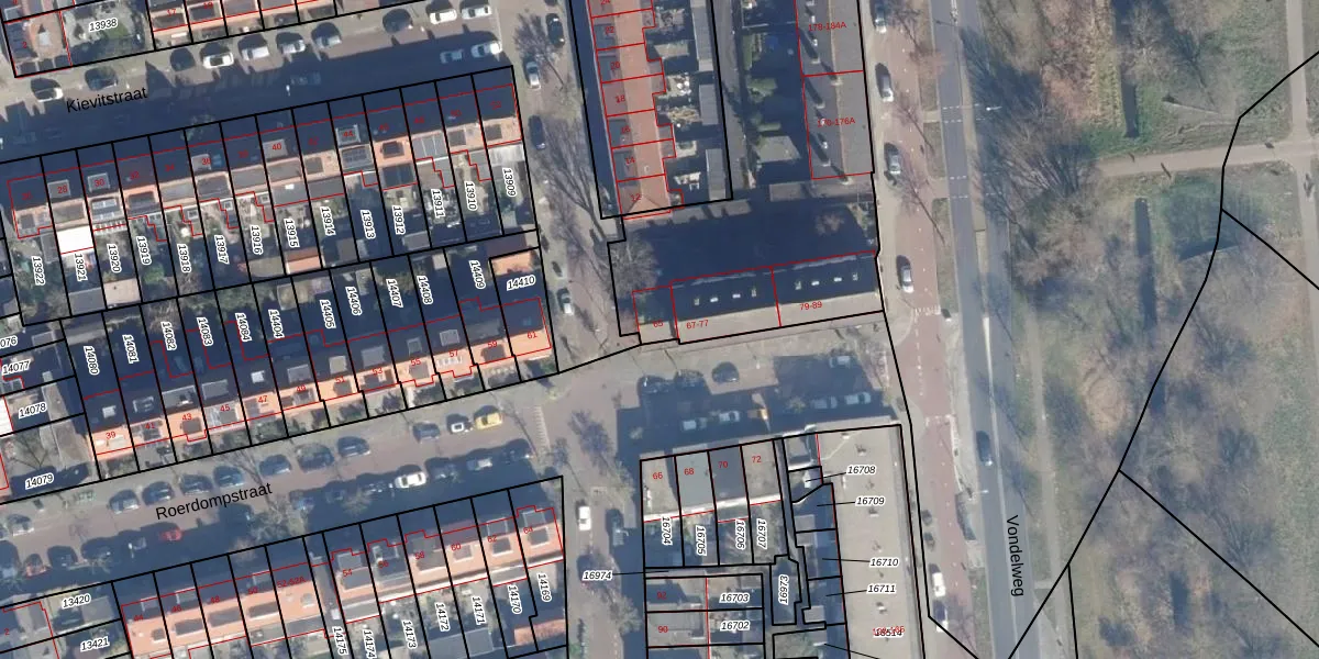 Het perceel waarop Roerdompstraat 65 staat heeft een oppervlakte van 3902 m². Dit is een zeer groot perceel. De perceeloppervlakte wordt geregistreerd door het Kadaster. Gedetailleerde informatie over de maten van dit perceel kunt u vinden in het rapport Kadastrale kaart met maatvoering van Roerdompstraat 65.