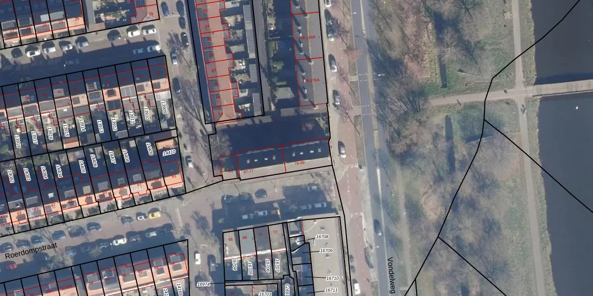 Het perceel waarop Roerdompstraat 83 staat heeft een oppervlakte van 3902 m². Dit is een zeer groot perceel. De perceeloppervlakte wordt geregistreerd door het Kadaster. Gedetailleerde informatie over de maten van dit perceel kunt u vinden in het rapport Kadastrale kaart met maatvoering van Roerdompstraat 83.