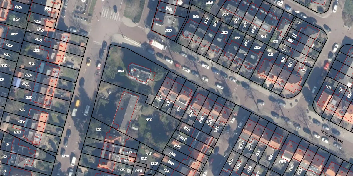 Rollandslaan 6 is gelegen op kadastraal perceel HLM02T2419. Deze kadastrale aanduiding is uniek en wordt gebruikt door het Kadaster om eigendomsrechten en andere zakelijke rechten vast te leggen. Het perceel maakt onderdeel uit van de kadastrale gemeente Haarlem.