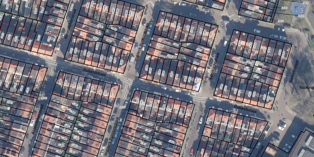 Gebruik de zoekbalk of klik op een perceel voor informatie over de adressen binnen dit perceel.
