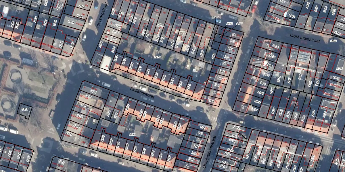 Het perceel waarop Rollandstraat 79 staat heeft een oppervlakte van 45 m². Dit is een klein perceel. De perceeloppervlakte wordt geregistreerd door het Kadaster. Gedetailleerde informatie over de maten van dit perceel kunt u vinden in het rapport Kadastrale kaart met maatvoering van Rollandstraat 79.
