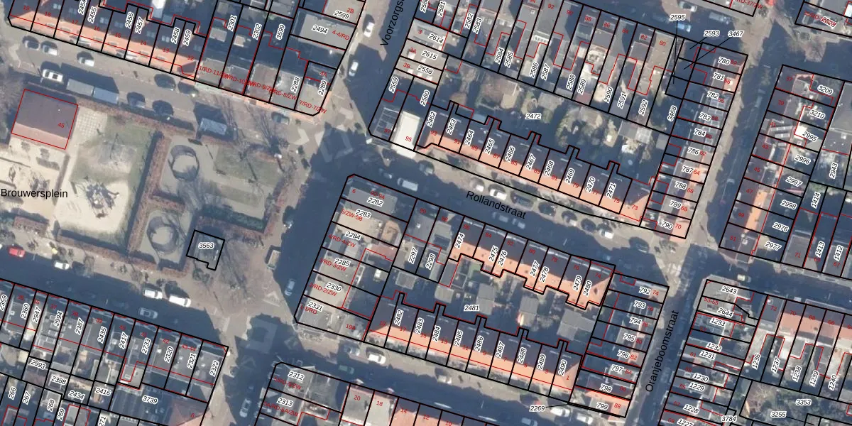Gebruik de zoekbalk of klik op een perceel voor informatie over de adressen binnen dit perceel.