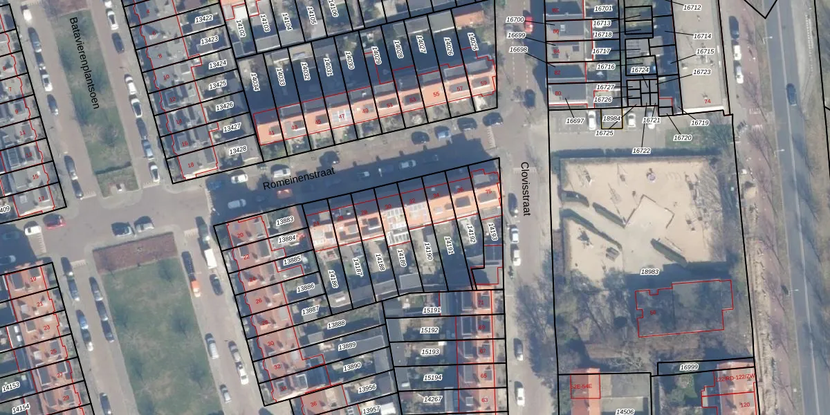 Het perceel waarop Romeinenstraat 32 staat heeft een oppervlakte van 164 m². Dit is een middelgroot perceel. De perceeloppervlakte wordt geregistreerd door het Kadaster. Gedetailleerde informatie over de maten van dit perceel kunt u vinden in het rapport Kadastrale kaart met maatvoering van Romeinenstraat 32.