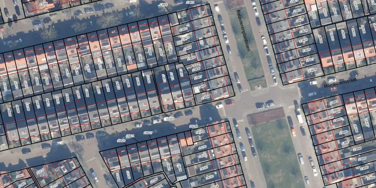 Gebruik de zoekbalk of klik op een perceel voor informatie over de adressen binnen dit perceel.