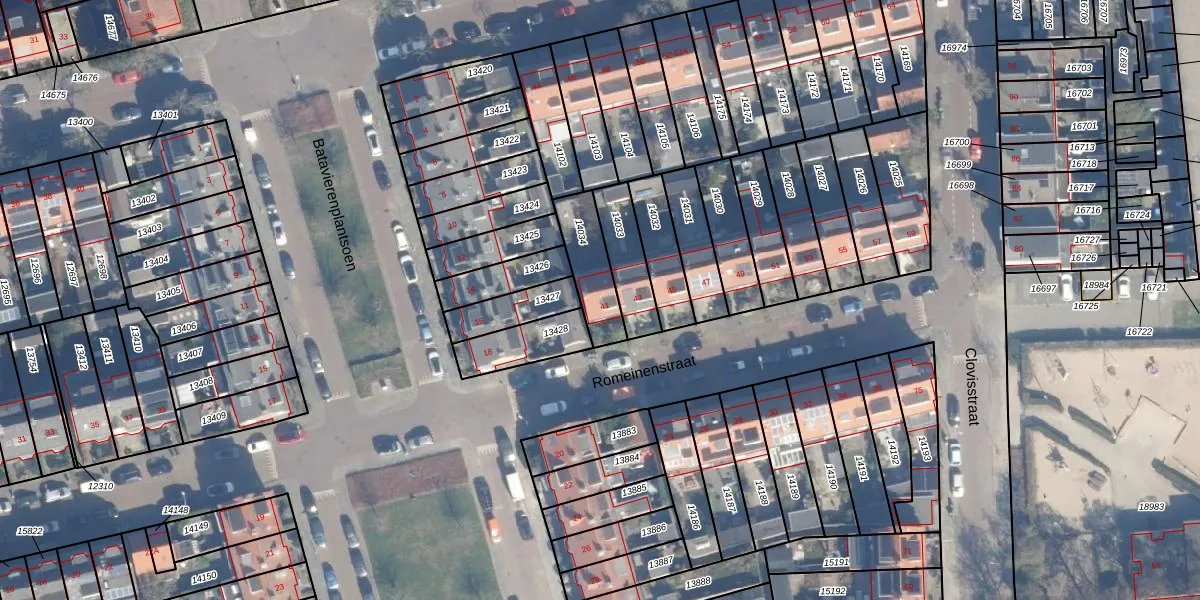Het perceel waarop Romeinenstraat 41 staat heeft een oppervlakte van 169 m². Dit is een middelgroot perceel. De perceeloppervlakte wordt geregistreerd door het Kadaster. Gedetailleerde informatie over de maten van dit perceel kunt u vinden in het rapport Kadastrale kaart met maatvoering van Romeinenstraat 41.