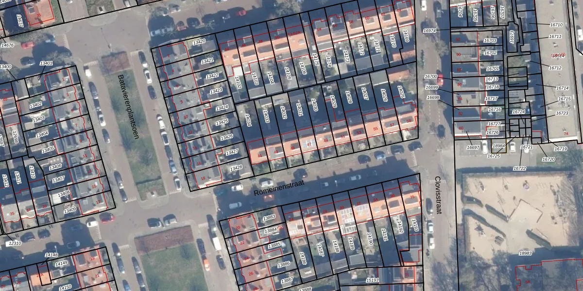 Gebruik de zoekbalk of klik op een perceel voor informatie over de adressen binnen dit perceel.
