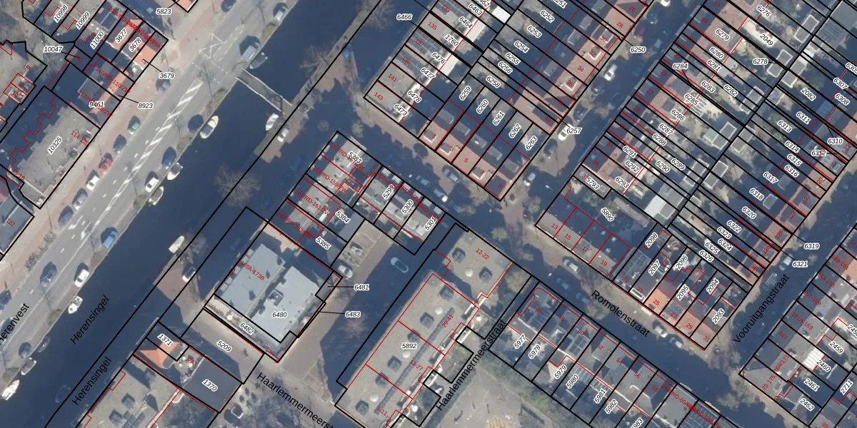 Het adres is gelegen op perceel 5301 in de sectie E en de kadastrale gemeente Haarlem. De kadastrale aanduiding is aldus HLM01-E-5301. Het perceel is 75 m² groot. Dat is kleiner dan de gemiddelde perceeloppervlakte in Haarlem, dat op 328,17 m² ligt. Het grootste perceel in de kadastrale gemeente is 13,9 ha. Het kleinste perceel heeft een oppervlakte van 0 m². Op het perceel liggen in totaal 2 adressen. De laatste wijziging in het de Basisregistratie Kadaster (BRK) was op 12-01-2005.