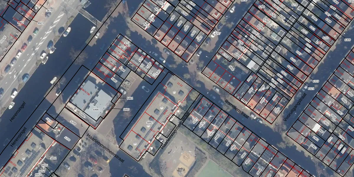 Het adres is gelegen op perceel 5892 in de sectie E en de kadastrale gemeente Haarlem. De kadastrale aanduiding is aldus HLM01-E-5892. De oppervlakte van het perceel is 1030 m². Dat is groter dan gemiddeld in Haarlem, waar de gemiddelde perceeloppervlakte op 328,37 m² ligt. Het grootste perceel in de kadastrale gemeente is 13,9 ha. Het kleinste perceel heeft een oppervlakte van 0 m². Op het perceel liggen in totaal 27 adressen. De laatste wijziging in het de Basisregistratie Kadaster (BRK) was op 12-01-2005.