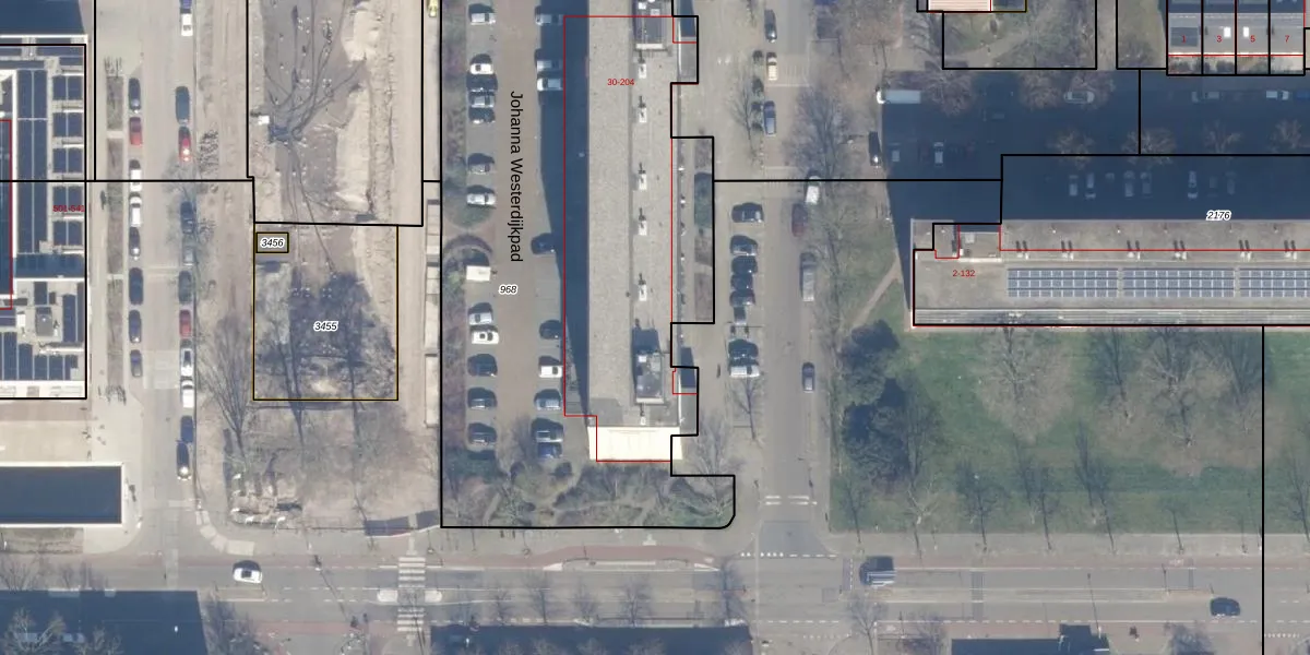 Het adres is gelegen op perceel 968 in de sectie Q en de kadastrale gemeente Haarlem. De kadastrale aanduiding is aldus HLM02-Q-968. De oppervlakte van het perceel is 3790 m². Dat is groter dan gemiddeld in Haarlem, waar de gemiddelde perceeloppervlakte op 1125,79 m² ligt. Het kleinste perceel in de kadastrale gemeente is 0 m² groot. De grootste perceeloppervlakte is 46,4 ha. Er zijn 88 adressen aanwezig op het perceel. De huidige grenzen van het perceel zijn digitaal in de Basisregistratie Kadaster (BRK) geregistreerd op 12-02-2002.