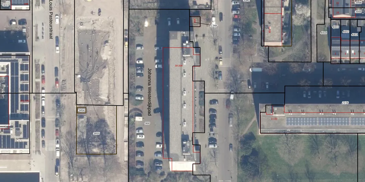 Het adres is gelegen op perceel 968 in de sectie Q en de kadastrale gemeente Haarlem. De kadastrale aanduiding is aldus HLM02-Q-968. De oppervlakte van het perceel is 3790 m². Dat is groter dan gemiddeld in Haarlem, waar de gemiddelde perceeloppervlakte op 1125,79 m² ligt. De grootste perceeloppervlakte in de kadastrale gemeente is 46,4 ha. De kleinste oppervlakte bedraagt 0 m². Er zijn 88 adressen aanwezig op het perceel. In de Basisregistratie Kadaster (BRK) werden de grenzen van het perceel geregistreerd op 12-02-2002.