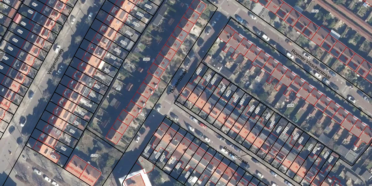 Het perceel waarop Roskamstraat 1 staat heeft een oppervlakte van 126 m². Dit is een middelgroot perceel. De perceeloppervlakte wordt geregistreerd door het Kadaster. Gedetailleerde informatie over de maten van dit perceel kunt u vinden in het rapport Kadastrale kaart met maatvoering van Roskamstraat 1.