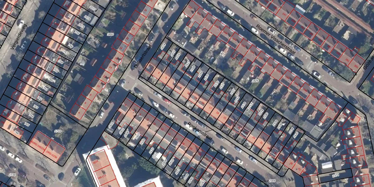 Gebruik de zoekbalk of klik op een perceel voor informatie over de adressen binnen dit perceel.
