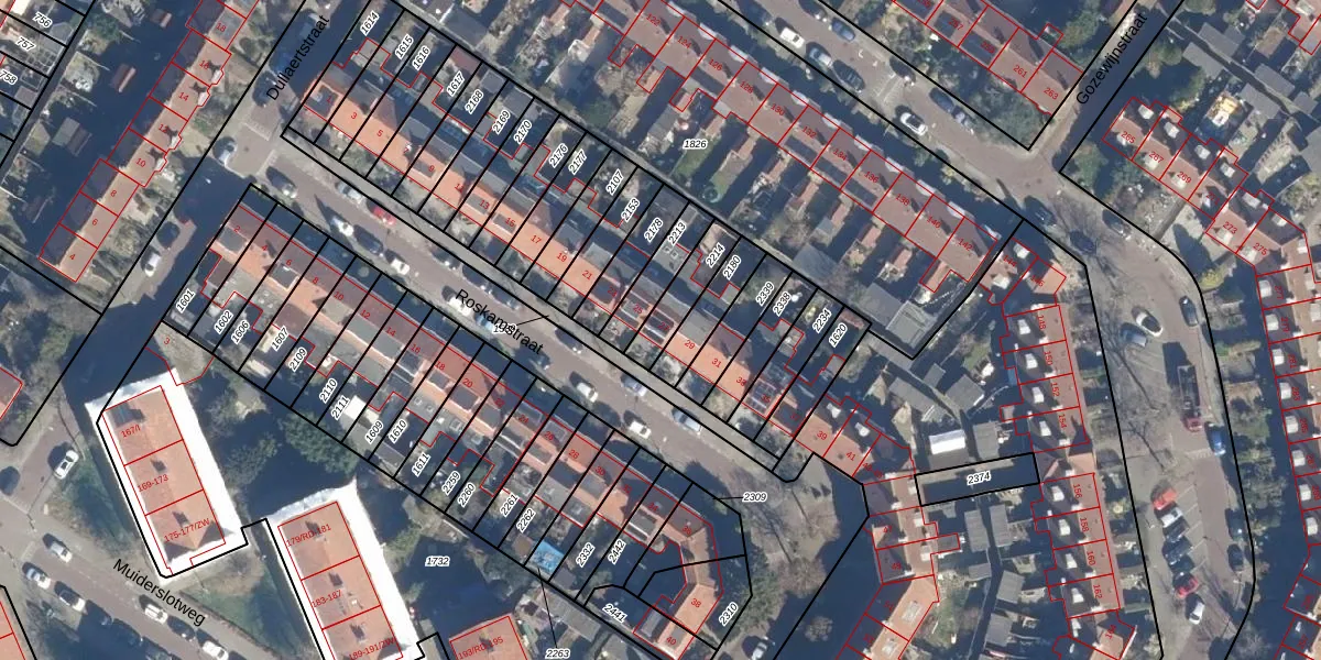 Het perceel waarop Roskamstraat 27 staat heeft een oppervlakte van 117 m². Dit is een middelgroot perceel. De perceeloppervlakte wordt geregistreerd door het Kadaster. Gedetailleerde informatie over de maten van dit perceel kunt u vinden in het rapport Kadastrale kaart met maatvoering van Roskamstraat 27.