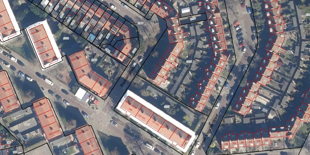 Het perceel waarop Roskamstraat 59 staat heeft een oppervlakte van 3759 m². Dit is een zeer groot perceel. De perceeloppervlakte wordt geregistreerd door het Kadaster. Gedetailleerde informatie over de maten van dit perceel kunt u vinden in het rapport Kadastrale kaart met maatvoering van Roskamstraat 59.