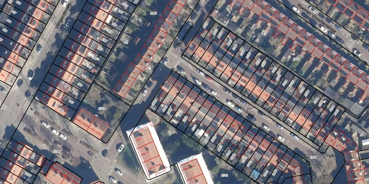 Gebruik de zoekbalk of klik op een perceel voor informatie over de adressen binnen dit perceel.