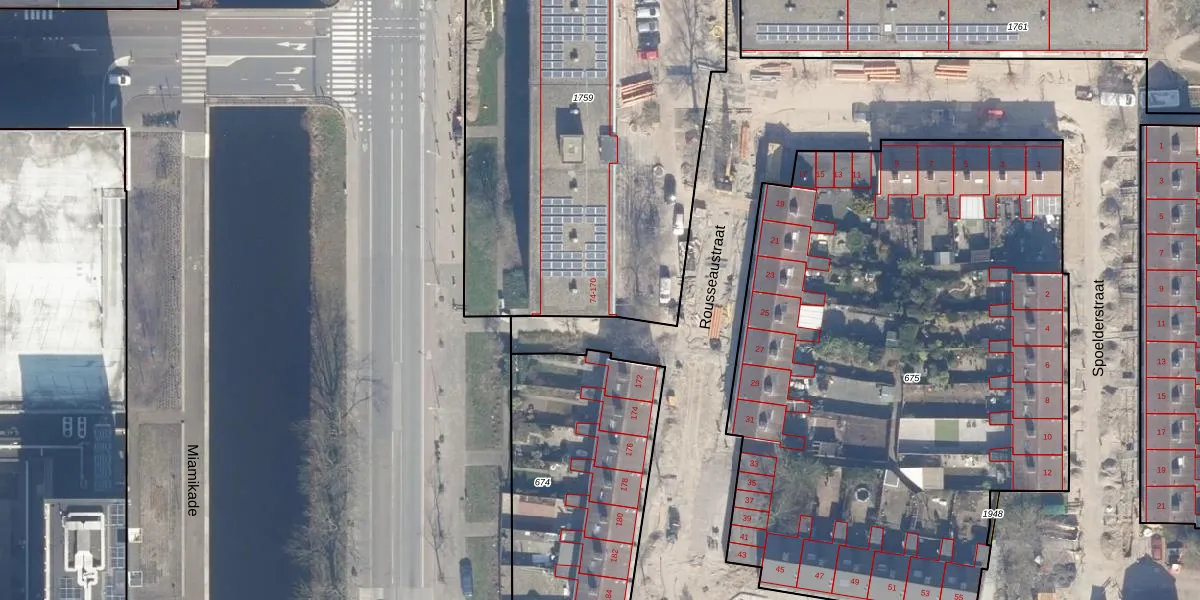 Het perceel waarop Rousseaustraat 106 staat heeft een oppervlakte van 2858 m². Dit is een zeer groot perceel. De perceeloppervlakte wordt geregistreerd door het Kadaster. Gedetailleerde informatie over de maten van dit perceel kunt u vinden in het rapport Kadastrale kaart met maatvoering van Rousseaustraat 106.