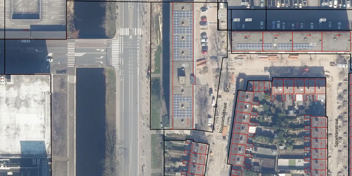 Het perceel waarop Rousseaustraat 160 staat heeft een oppervlakte van 2858 m². Dit is een zeer groot perceel. De perceeloppervlakte wordt geregistreerd door het Kadaster. Gedetailleerde informatie over de maten van dit perceel kunt u vinden in het rapport Kadastrale kaart met maatvoering van Rousseaustraat 160.
