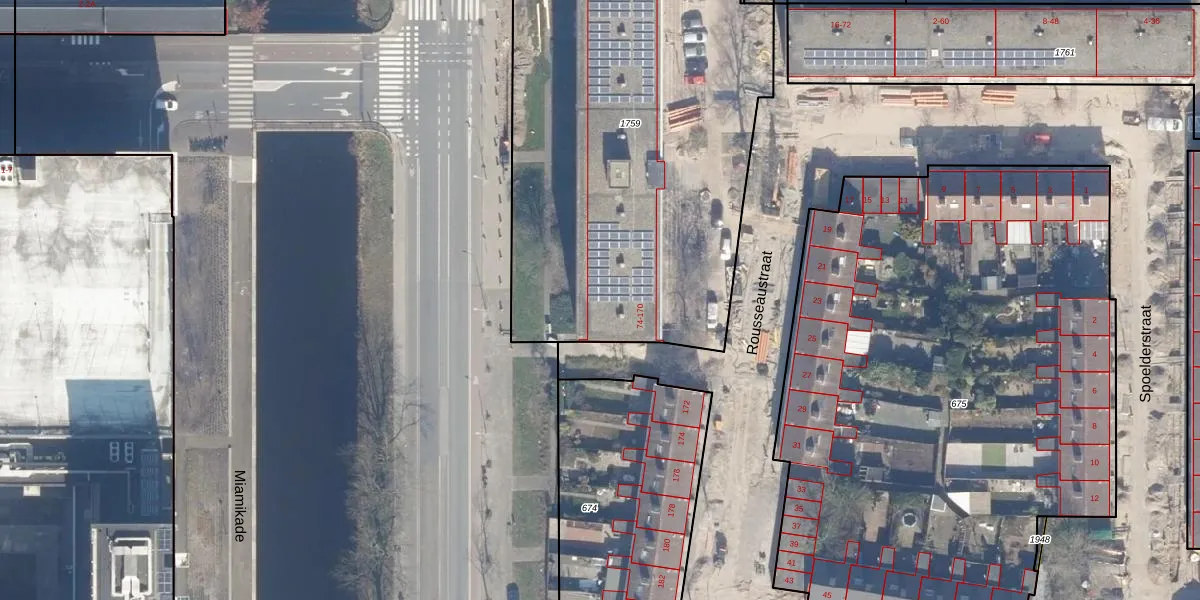 Het perceel waarop Rousseaustraat 168 staat heeft een oppervlakte van 2858 m². Dit is een zeer groot perceel. De perceeloppervlakte wordt geregistreerd door het Kadaster. Gedetailleerde informatie over de maten van dit perceel kunt u vinden in het rapport Kadastrale kaart met maatvoering van Rousseaustraat 168.
