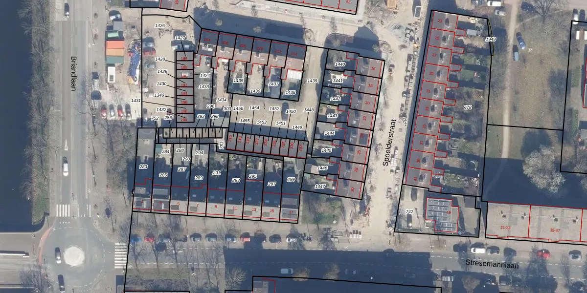 Het adres is gelegen op perceel 1449 in de sectie X en de kadastrale gemeente Haarlem. De kadastrale aanduiding is aldus HLM02-X-1449. Het perceel is kleiner dan gemiddeld in Haarlem. Het perceel is 18 m² groot, terwijl het gemiddelde ligt op 1124,44 m². De grootste perceeloppervlakte in de kadastrale gemeente is 46,4 ha. De kleinste oppervlakte bedraagt 0 m². Op het perceel bevinden zich geen andere adressen. In de Basisregistratie Kadaster (BRK) werden de grenzen van het perceel geregistreerd op 01-10-2009.
