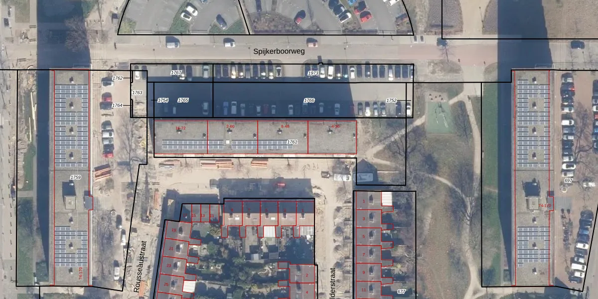 Het perceel waarop Rousseaustraat 8 staat heeft een oppervlakte van 1269 m². Dit is een zeer groot perceel. De perceeloppervlakte wordt geregistreerd door het Kadaster. Gedetailleerde informatie over de maten van dit perceel kunt u vinden in het rapport Kadastrale kaart met maatvoering van Rousseaustraat 8.