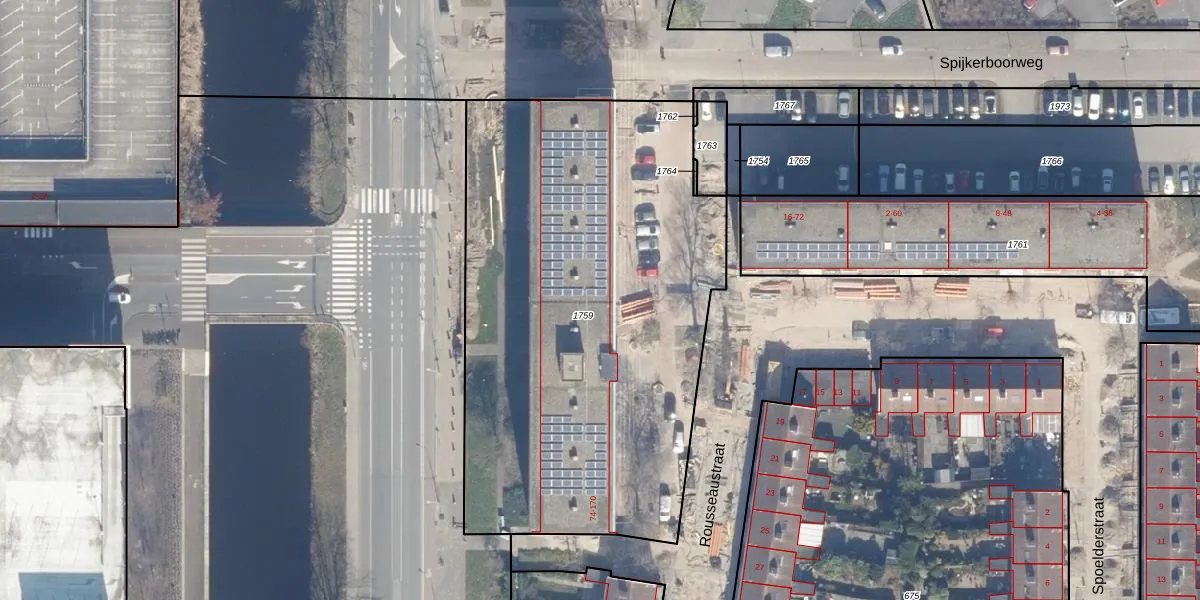 Het perceel waarop Rousseaustraat 88 staat heeft een oppervlakte van 2858 m². Dit is een zeer groot perceel. De perceeloppervlakte wordt geregistreerd door het Kadaster. Gedetailleerde informatie over de maten van dit perceel kunt u vinden in het rapport Kadastrale kaart met maatvoering van Rousseaustraat 88.